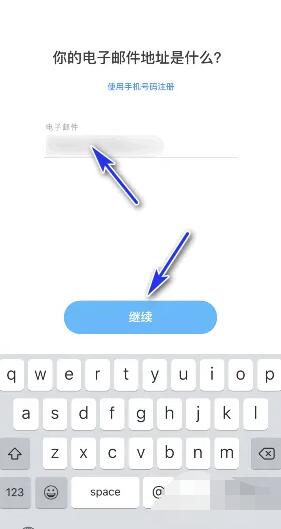 6、最后我们输入自己的电子邮件地址,点击继续即可完成注册了。