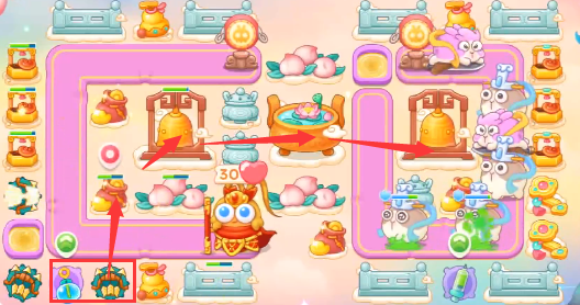 5、这一关越到后边来到的飞行兔越多,所以需要多放置防空的炮塔。