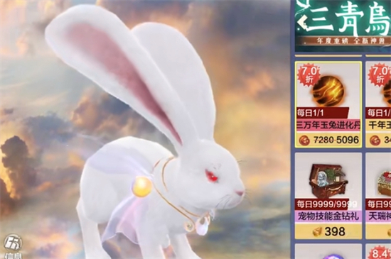 1、玉兔属于水陆空三栖的双人骑乘宠物,玩家可以携带玉兔在多种环境里进行战斗。