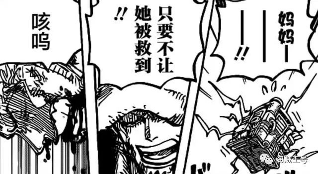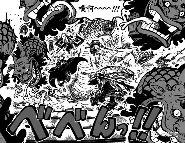 与赤鞘“虐菜局”同时进行的是双皇与五位挑战者的海贼决战,从战斗表现上来看,本话mvp无疑是索隆,他以一人之力挡住双皇联合技霸海的表现绝对是海贼王剧情中史无前例的,这既是尾田对此前索隆扛住大熊伤害情节的自我致敬,也表达了他对索隆这个角色的偏爱,但就算尾田再偏爱索隆,也不会让他硬抗霸海后毫发无伤,于是我们看到了1009话结尾口吐鲜血的重伤索隆。