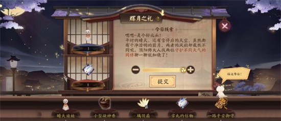 阴阳师近期上线了辉月之礼活动,在活动中给玩家带来了很多的线索,按照这些线索可以找到乡音的道具,提交即可得到福气值奖励。那么接下来小编带来了辉月之礼答案攻略最新汇总,一起和小编来看看吧。