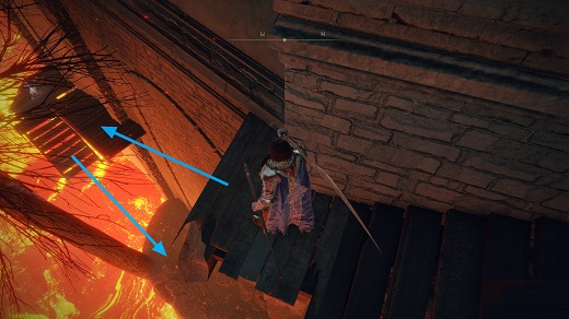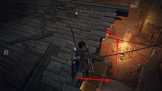 离开教堂后右转,在蛇人士兵前的屋顶向右前进。