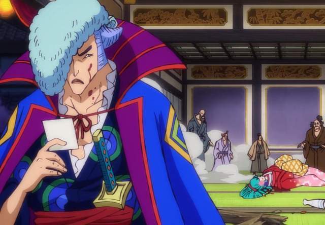 所以狂四郎很看不起大蛇,治国无能计谋上也是蠢蛋,他也只不过是凯多直接管理和之国而已,他不死权力也早就名存实亡。大蛇害死老康,平民们都哭泣,索隆曾得老康帮助,更是气愤不已,他要出手砍了大蛇,却被狂四郎出手拦住,这时狂四郎还需要隐藏身份,他身为大蛇贴身最强武士,大蛇有难就得出面。