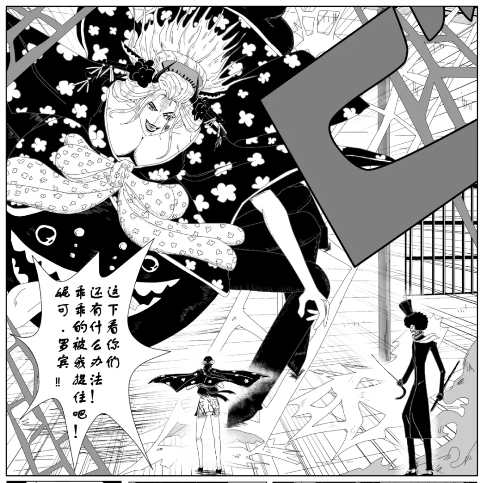 番外篇第一幅画面,并没有紧接上一话的内容,而是直接转场来到罗宾、布鲁克以及玛利亚这边的战场。从剧情来看,似乎罗宾这里处于弱势,已经逃了很久,给玛利亚终于将他俩逼入了绝境!