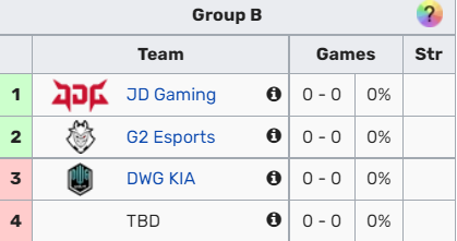 再看B组,B组从队名来看可能会让人觉得是今年竞争最激烈的一个小组。LPL1号种子京东,欧洲赛区2号种子G2,还有LCK的3号种子DK。