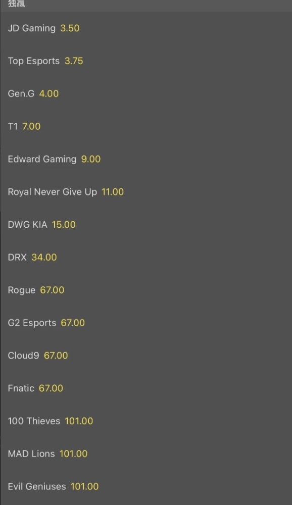 EDG虽然被分在了死亡小组,但夺冠赔率依然领先于拿到绝世好签的RNG,而LCK的三四号种子则被排在了第七和第八位,也就是说,中韩赛区的八支队伍包揽了夺冠赔率的前八名,但更看好LPL的四支队伍有层级上的领先,这还是非常罕见的。