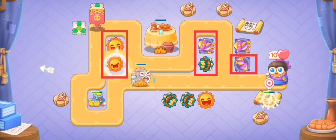 4、等金币越来越多之后种植多重箭、烟花塔和太阳花。