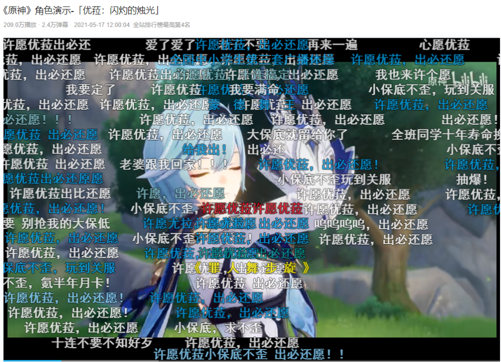 事实上《原神》官方在B站发布的视频,一个个播放量都不低,或许是因为B站的二次元属性吧!但是这回的“优菈”更是其中的翘楚,可以说是近一个月来玩家互动最多的角色PV,充斥着“许愿出货”的声音,看来《原神》5月份的流水将会大涨了!