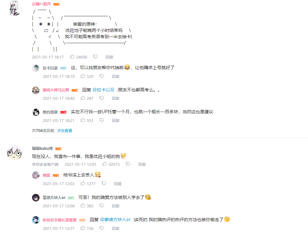 事实上就连这26%的“抽卡”玩家,其中也有不少只打算抽一下卡池中的四星,毕竟行秋还是很好用的。至于为何国外玩家不打算抽优菈,最主要的因素则是:没钱。毕竟之前有温迪、钟离、胡桃这几个卡池已经掏空了不少人的钱包,再有但作为输出来说,低命座的优菈其实并不出彩,在没有明确测评的情况下,自然会有不少玩家选择观望了,看来国内外玩家的抽卡想法还是有一定差异的啊!