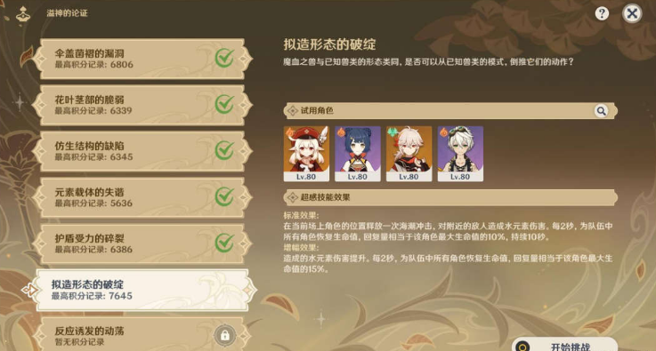 1、点击[溢神论证之所],进入到挑战界面。