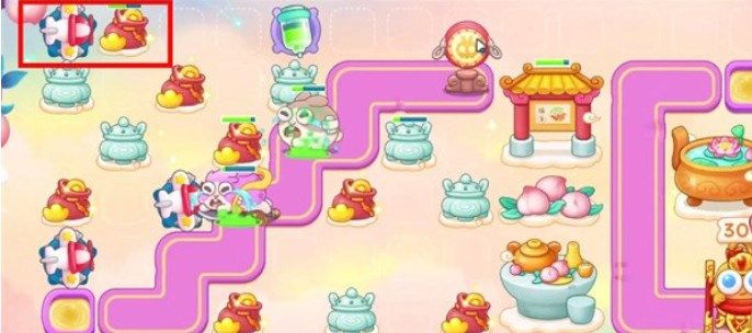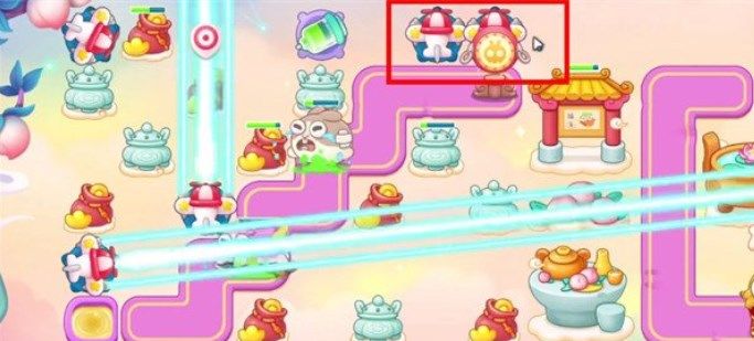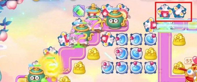 1.开局在下图位置放置一个顶级玩具飞机,再放一个毒针塔,玩具飞机锁定钱袋子;
