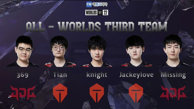 三阵:上单369、打野Tian、中单Knight、下路Jackeylove、辅助Missing