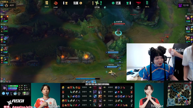 然而这才过去几天,AJ似乎也是来了COS的瘾,在直播中玩起了COS,可以看到在直播中,AJ任由两位“助理”在自己的头上与脸上摆弄,不得不说这两位还是蛮有实力的,很快AJ就完成了装扮,一个活脱脱的男版春丽就出现了,看得屏幕前的小伙伴们“热血翻涌”。