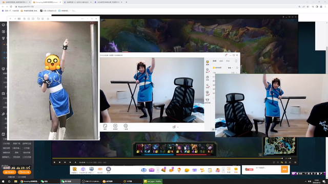 最要命的是,AJ不光COS了春丽,而且还在直播间里面模仿了一些春丽的经典动作,而他的对照图则是那么地完美,两厢一对比,我们可以发现,AJ就是来整活儿的,不由得想起了平时我们刷短视频中的一句非常流行的话:“这啥啊这是...”