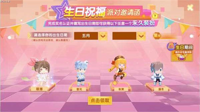 2、选择出生日期以及在四个皮肤里面挑选一个领取;