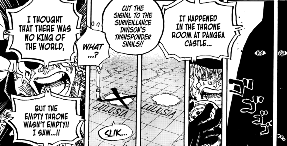 在最新话1060话萨博与革命军首领龙透露圣地玛丽乔亚盘古城的虚空王座上,居然有人坐了上去,自认自己是【世界之王】。