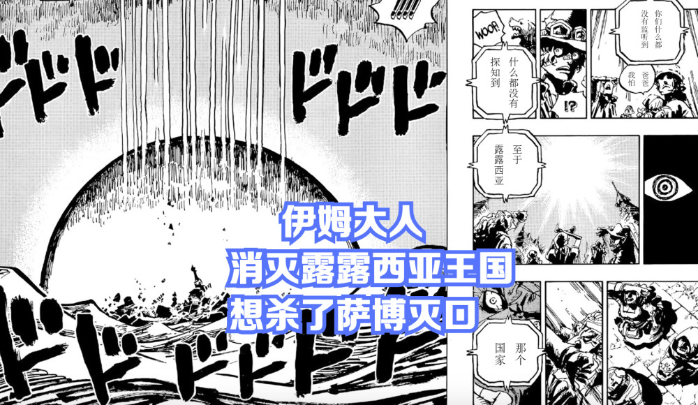 这个人萨博没来得及说出来,就被伊姆派来的巨大战舰(疑似天王)给摧毁了,把露露西亚王国彻底消灭,从这个世界上抹除了。