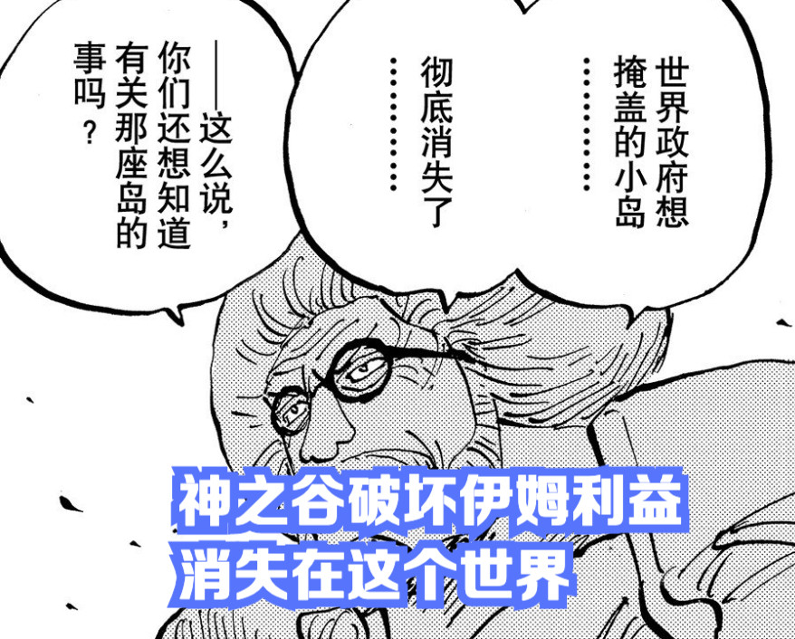 在957话战国说【这个岛屿早就消失了】,是因为这个神之谷被伊姆给彻底摧毁了,也是五老星极度隐瞒的历史真相之一,导致很多海军中将压根不知道,算是揭开了一个大填坑。