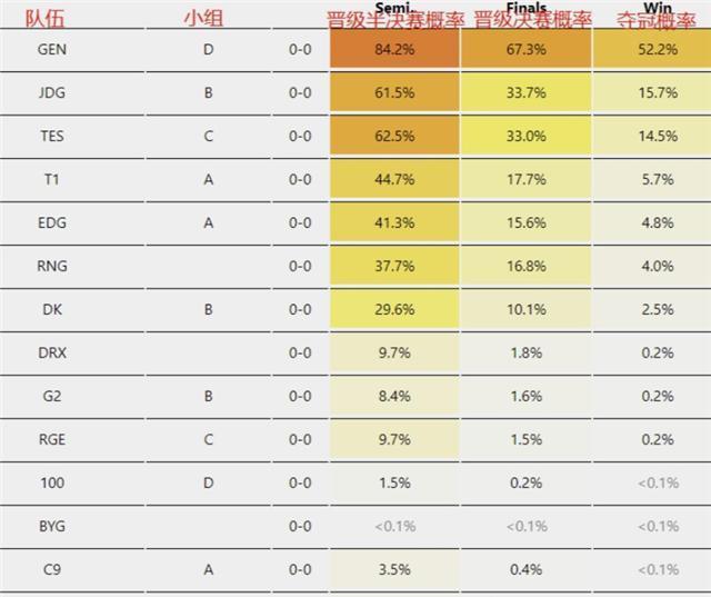 除此之外,LCK还有一份战队排名,他们心中第一战队自然是GEN,第二是JDG,第三TES,第四T1,第五EDG,还是很看好LPL赛区队伍的。另外,还有一份预测本次世界赛的概率图,其中GEN战队夺冠概率在52.2%,JDG是15.7%,TES是14.5%,T1落到了5.7%,其他战队更低。本文由猫头包包原创,欢迎关注,带你一起涨知识!