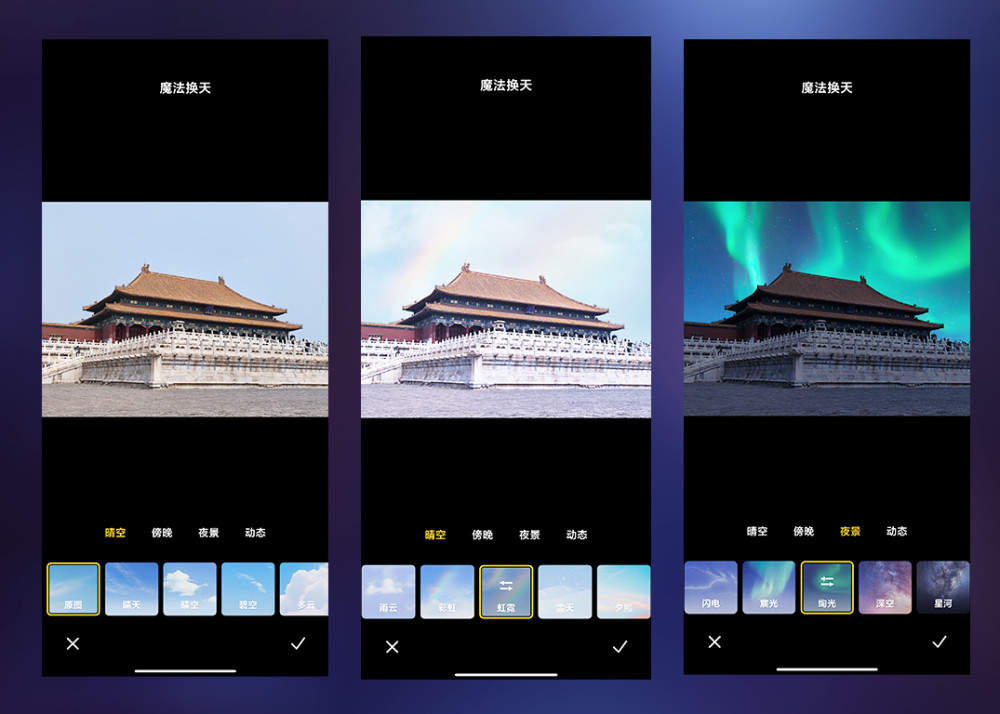 在一些相机玩法上,小米11 Ultra也是跟以前一样,电影镜头、魔法换天等等,不过这次魔法换天还加入了夜景换天的功能。我测了一下,只要背景不是特别复杂,不仔细看还是不会穿帮的。