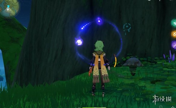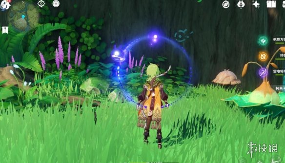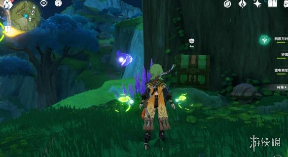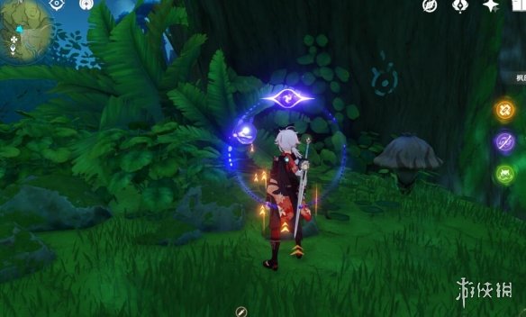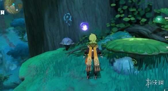 我们可以从前面的传送点利用四叶印飞过来,还是老样子,利用草元素激活蘑菇印记。