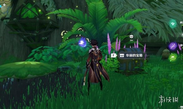 利用草种子飞过来,还可以顺手飘一个奇馈宝箱。
