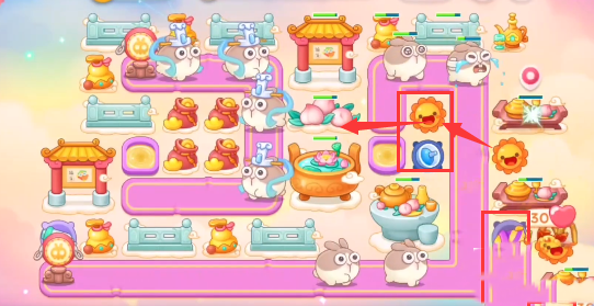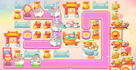 3、将太阳开出的格子继续放置太阳,再放一个雷达补漏,优先升满太阳,后排开始放置烟花防空。