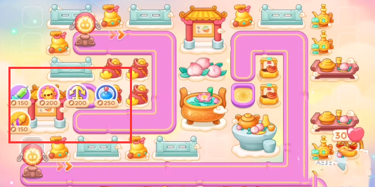 1、这一关我们可以选择的炮塔为毒针、太阳、雷达、船锚、烟花,这一关我们使用太阳和烟花玩。