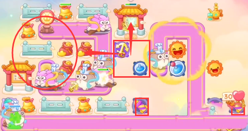 5、打完桃子之后补上太阳和烟花防空,如图所示。