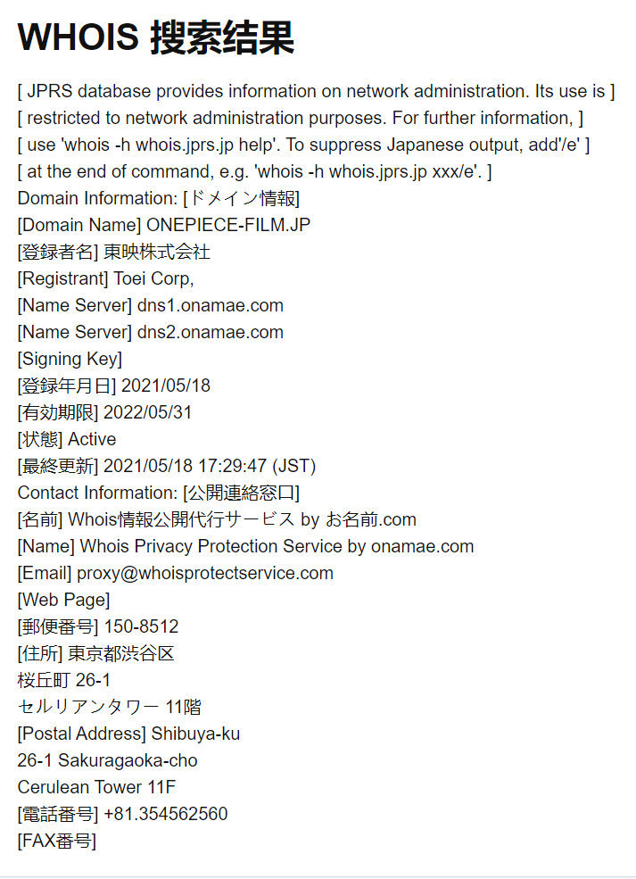 就在近日,根据“眼尖”的海迷爆料,东映昨日注册了新的海贼王电影域名“onepiece-film.jp”,根据目前的信息显示,有效期是一年。这意味着什么?想必都知道,那就是明年新的剧场版有戏了。