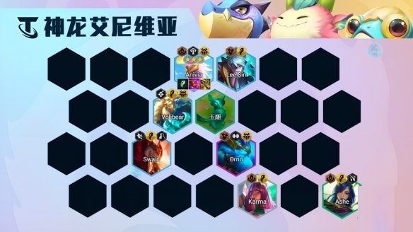 阵容组成艾希/卡尔玛、沃利贝尔、艾尼维亚、斯维因、李青、奥恩、妮蔻、亚索