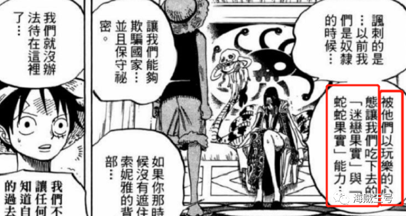 因为在汉库克迷上路飞之前的时候,因为路飞发现了汉库克的秘密,所以汉库克就说出了自己尘封多年的秘密,实际上她们姐妹原本是天龙人的奴隶,而恶魔果实的能力,也正是在那时候被强行吃下去的,而天龙人让她们吃恶魔果实的能力的目的就是为了好玩而已,其实这里也是在表示腐朽的天龙人,根本就没有人情味的猎奇心理而已,而且,假如说真的是恶魔果实给予了汉库克能力的话,那么效果应该远远会超过目前的力量而已。