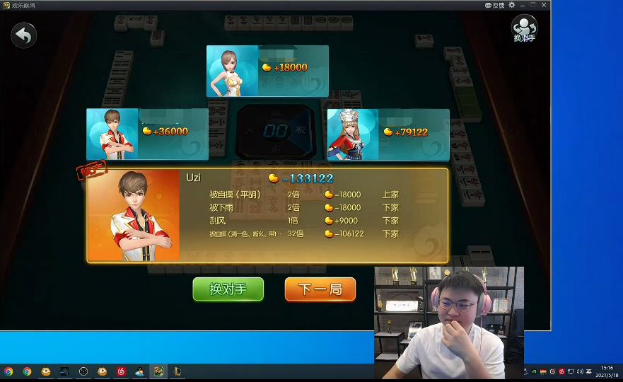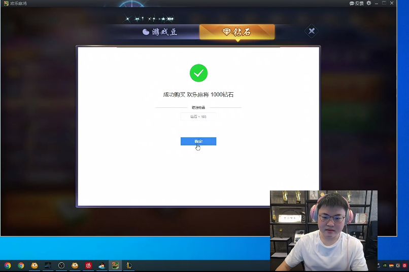 不得不说,澡子哥真是瘾大,每天LOL排队的时候就来两把麻将。和最初斗地主一样,真·慈善赌王,每天充钱,每天送豆。