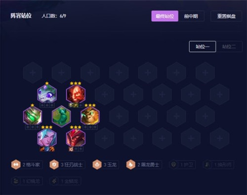 中期3-2拉6级大搜一波,在2护卫2狂战的基础上,可以临时上3玉龙,也可以上3个狂战,搜完之后就要锁连胜。这里注意,6级和7级要大搜两波,6级搜的时间相对较短,从3-2大约搜到4-2左右就够了,布隆和永恩拿到6到7只就够了,不用在6级强行追3星。上到7级之后,持续大搜一波,优先给永恩和奥拉夫追3星,其次是猴子、洛和布隆,其余没必要追3星。这些全部追3星之后,在5到6阶段决赛圈才能上8级,在 8人口单挂巴德即可大成型。