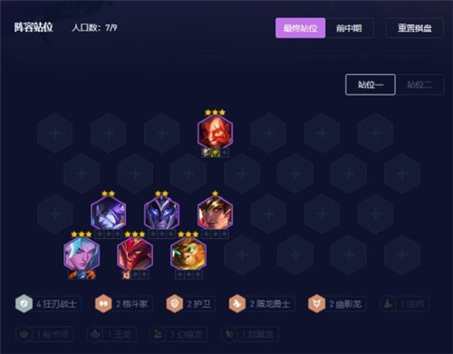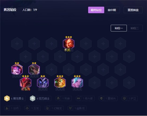 目前为止4狂战阵容有两套打法,其一是4狂战4屠龙奥拉夫,其二就是上图中的3星永恩,也是优先推荐的阵容,因为屠龙奥拉夫有一定的局限性,必须2阶段拿到奥拉夫才能养攻击力,其次是之前的热补丁中削弱了奥拉夫的攻击加成,对综合强度有一定影响。