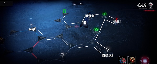 2.背刺、躲开怪物,前往目标点3,之后前往终点。