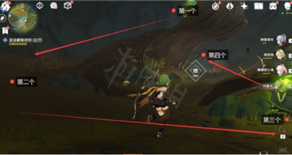 言归正传,这七个封印想要全部解除的话,需要借助琴对着花和草种子演奏大梦的曲调,还有就是4个草靶子的位置比较阴间,容易看漏。