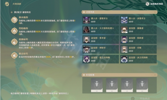 1、挑战最高倍率是4倍,每一轮自配队伍,有试用角色,使用【重熔效应】是从四个增益效果中随机触发一个或者两个,维持一段时间