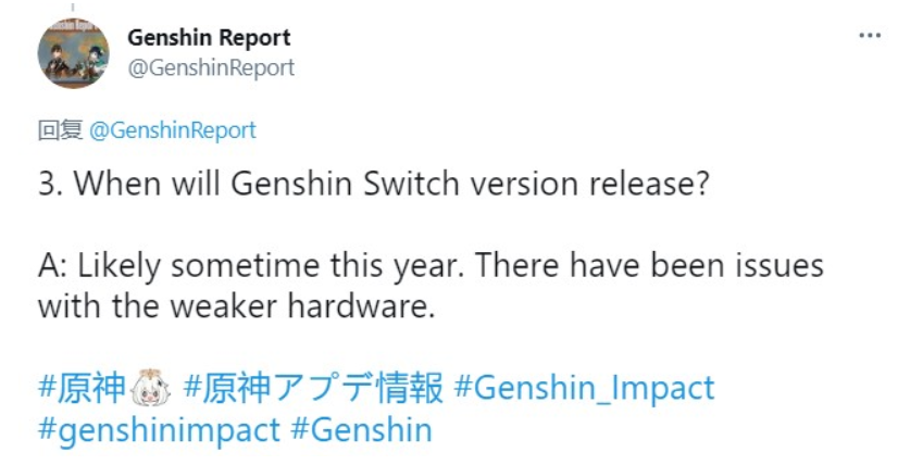 近日,原神“内鬼”GenshinReport再度爆料,依旧可以确认Switch版的原神正在开发优化之中。