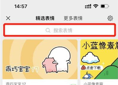 2、最上面一排有一个搜索的按键,点击进去搜索更多表情包;