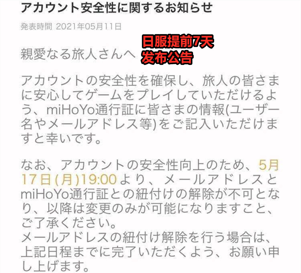 日服提前发布公告