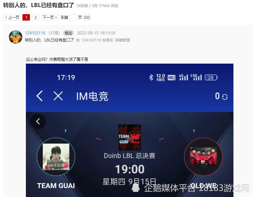 由于赛事的火热,作为娱乐性质的LBL甚至已经被人开盘。