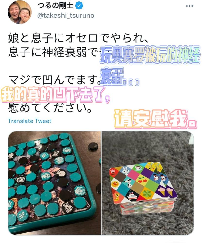 而黑白棋又是规则极其简单的,所以鹤野刚士输给自家5岁儿子的事情,很多日本网友都对此感到不解,鹤野是真的输了吗?感觉像是在放水,大概是为了培养孩子的自信心吧,随后鹤野刚士对此表示,不,输得很惨,我感觉到了记忆力的衰退。