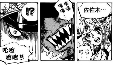 最后,大和的恶魔果实也该亮相了。大和多数时候都在打杂兵,不需要动用果实能力。只有面对六子佐佐木的时候,分镜中大和的外表发生了变化,嘴里长出了獠牙,看来是动物系能力者无疑。但佐佐木被弗兰奇接手,大和就停止了变身。