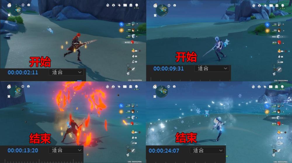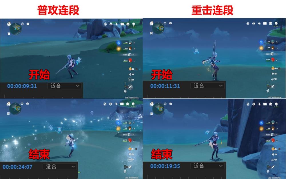 通过录像记录可得,重击连段用时为:00:08:04
