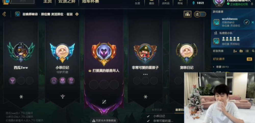 俱乐部放假,没有战队给予的Rank分要求,Doinb便邀请了几位好友一起灵活组排,几个人都是抱着娱乐的心态,在嘻嘻哈哈中输赢参半。
