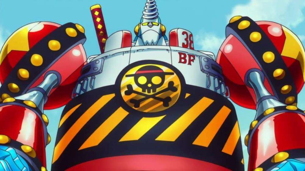 这时,水下出现了一个巨大机器人,它一拳干掉了鲨鱼。不过,它并不是来救人的,而是在实验这条机器鲨鱼的可控制性。一位美女从机器人体内走出,自称贝加庞克。另一边,甚平将三人救上岸,波妮告诉他们,眼前的这座岛,正是属于贝加庞克的“蛋头岛"。