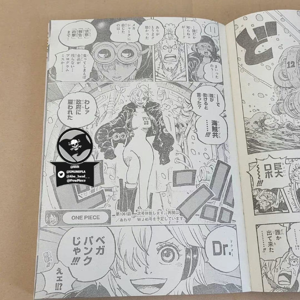 《海贼王》连载到了1061话,这一话篇幅较短,只有15页,但内容不少。与庞克·哈萨德的情况一样,草帽团兵分两路,路飞带着乔巴、甚平、波妮闯岛,其他人则与对方的部下们正面遭遇。最后出现的贝加庞克,大概率是机器人。