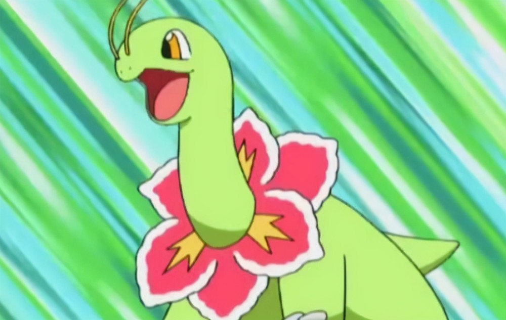 其实大竺葵这只宝可梦是有点偏中性设计的,但是因为动画中小智的月桂叶是雌性的,经常对着小智撒娇所以这一家给人的就是女性化的常规印象更多了,而大竺葵本身原型来自于远古的蜥脚类恐龙,蜥脚类恐龙大部分是植食动物,比较有代表性的就是腕龙、天府峨眉龙等长脖子恐龙,给人温和的感觉,加上大竺葵融入了花朵元素,女性化象征就更明显了。