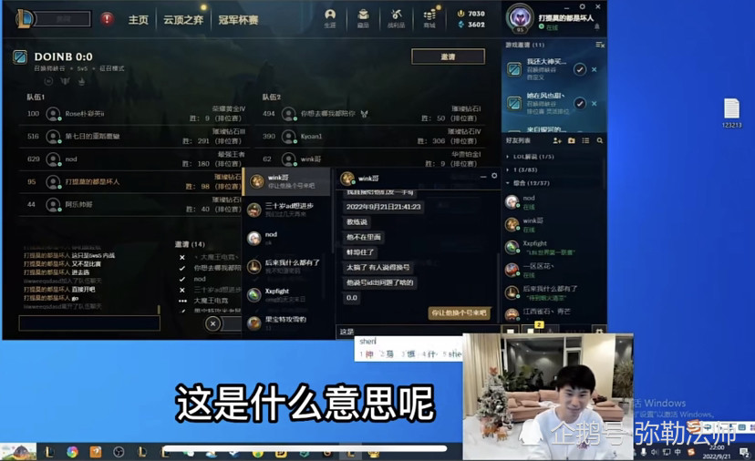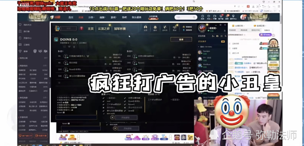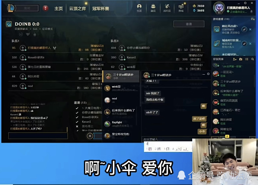 刚开始xinyi说要打三点的选拔赛(lsbl),然后Doinb听到有wink还有其他LPL的职业选手,就提议不用打选拔赛,直接安排晚上比赛。殊不知,晚上真有“安排”。